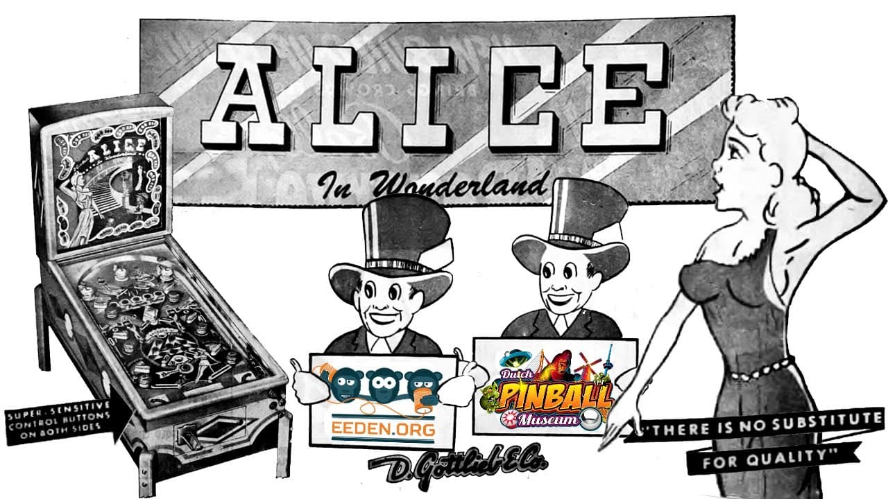 "Alice in Wonderland" is a single-player electro-mechanical pinball machine released by D. Gottlieb & Co. in August 1948. Designed by Harry Mabs, the game features six flippers, ten passive bumpers, and two kick-out holes. The artwork, created by Roy Parker, vividly captures the whimsical essence of Lewis Carroll's classic tale.