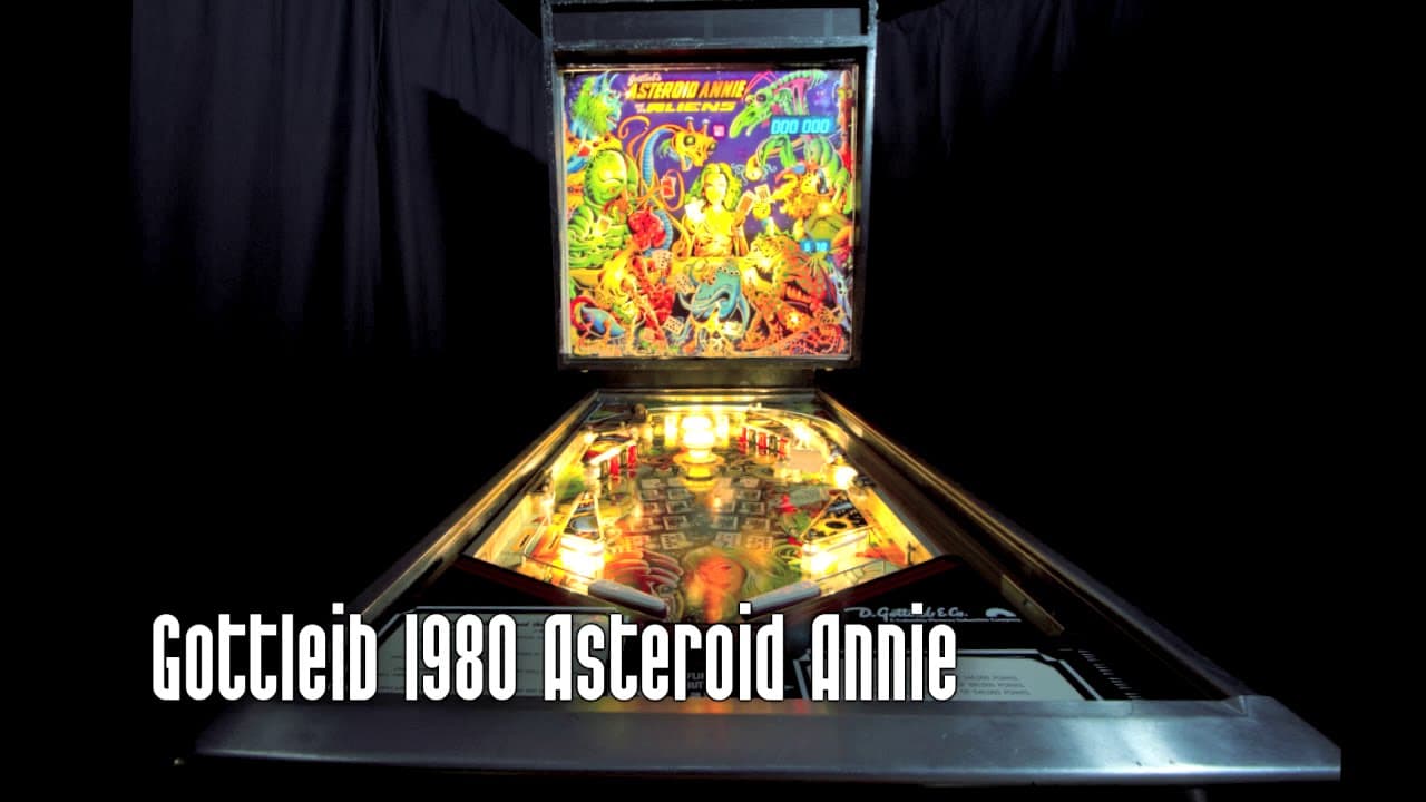 "Asteroid Annie and the Aliens," released by Gottlieb in December 1980, is a rare solid-state pinball machine with only 211 units produced. The game features two flippers, no ramps, and no multiball, focusing instead on skill shots and classic pinball mechanics. The machine is set in a sci-fi theme, with artwork by Gordon Morison and a design by John Buras.