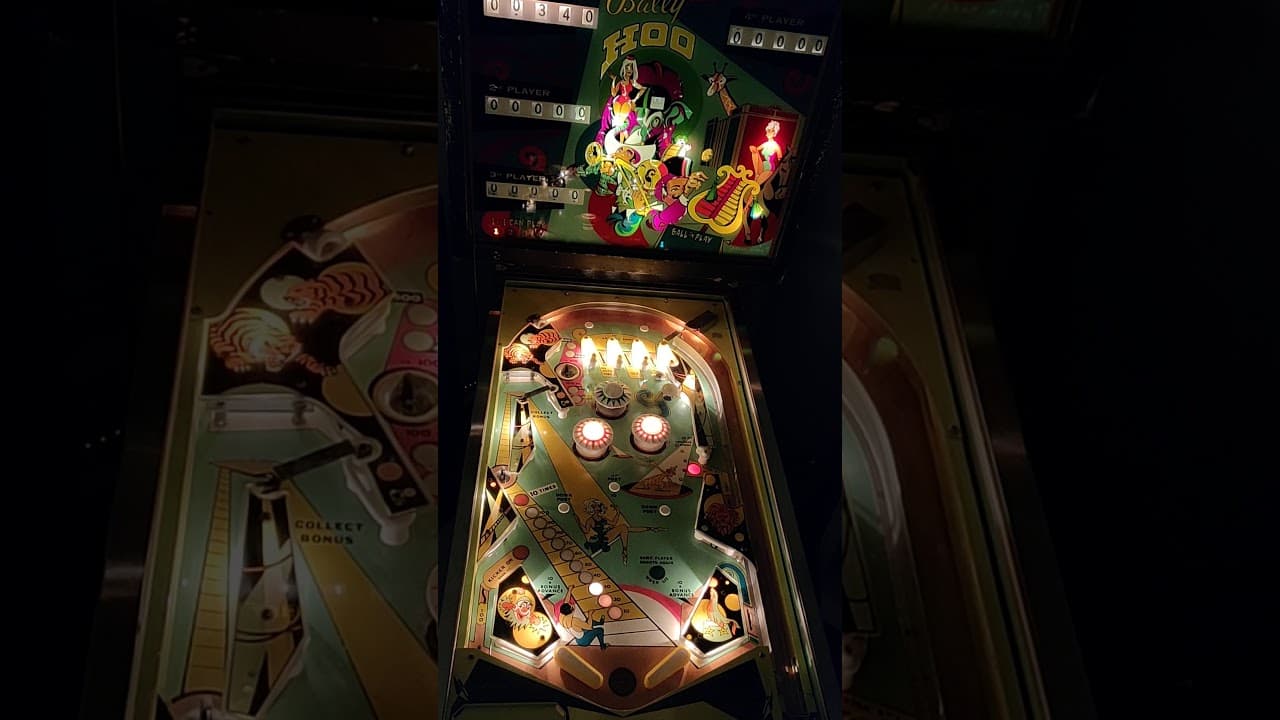 The Bally Hoo (1969 version), produced by Bally Manufacturing Co., was a nod to the company's original 1932 hit. Designed by Ted Zale and with artwork by Christian Marche, this electro-mechanical machine was notable for being the first Bally pinball game to feature 3-inch "Jumbo" flippers, a significant upgrade from the standard 2-inch size used in earlier models. Additionally, it was the first Bally game to introduce an up-post ball saver between the flippers, which helped prevent the ball from draining prematurely.