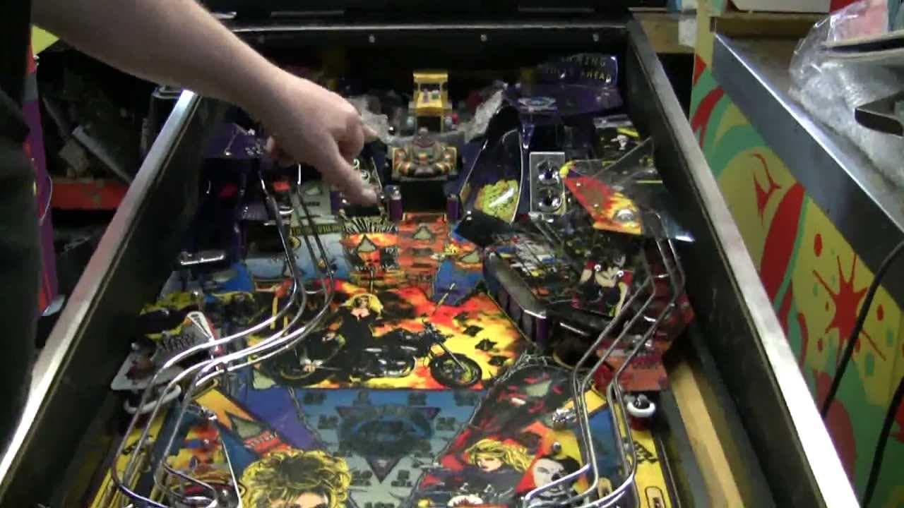 Barb Wire pinball, produced by Gottlieb in April 1996, is based on the movie of the same name featuring Pamela Anderson. Designed by Bill Parker, this machine was the last produced by Gottlieb before the company shut down.
