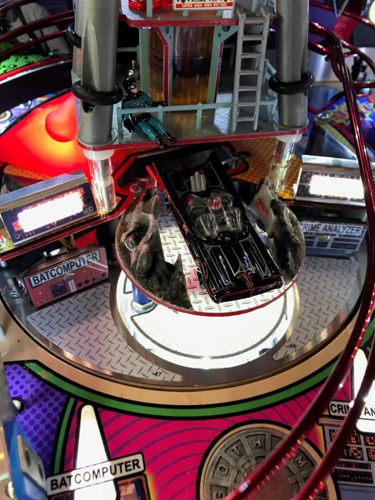 The Batman 66 pinball machine by Stern, released in December 2016, is based on the classic 1966 TV series. Designed by George Gomez, it features custom voice work by Adam West and includes dynamic LCD animations, two ramps, six multiball modes, and themed callouts by original cast members. The game is part of Stern's SPIKE 2 system and showcases vibrant artwork by Christopher Franchi. With its rich theming and engaging gameplay, it has become a popular collector's item among pinball enthusiasts.
