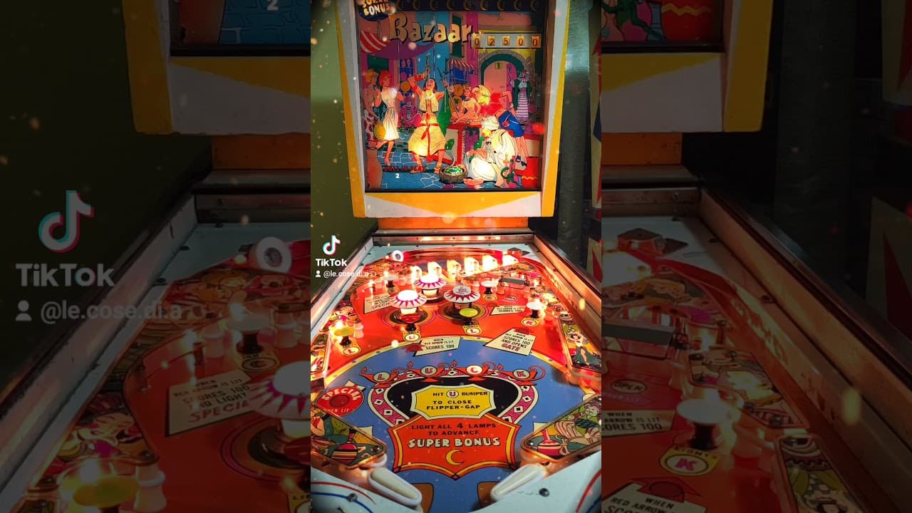 The Bazaar pinball machine, released by Bally Manufacturing in 1966, is known for being the first to feature the innovative "zipper flippers" design. This feature allowed the flippers to close the gap between them, preventing the ball from draining, which added a strategic element to gameplay. Designed by Ted Zale, the game also includes six mushroom bumpers, three pop bumpers, and a skill shot feature.
