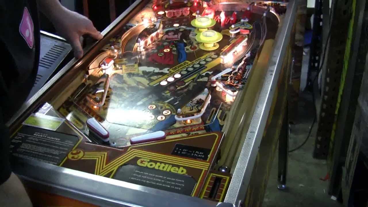 "Bounty Hunter" is a pinball machine released by D. Gottlieb & Co. in July 1985. It has a Western theme with three flippers and no ramps or multiball. Part of the Gottlieb System 80B series, the game was designed by John Buras with artwork by Larry Day. A total of 1,220 units were produced.
