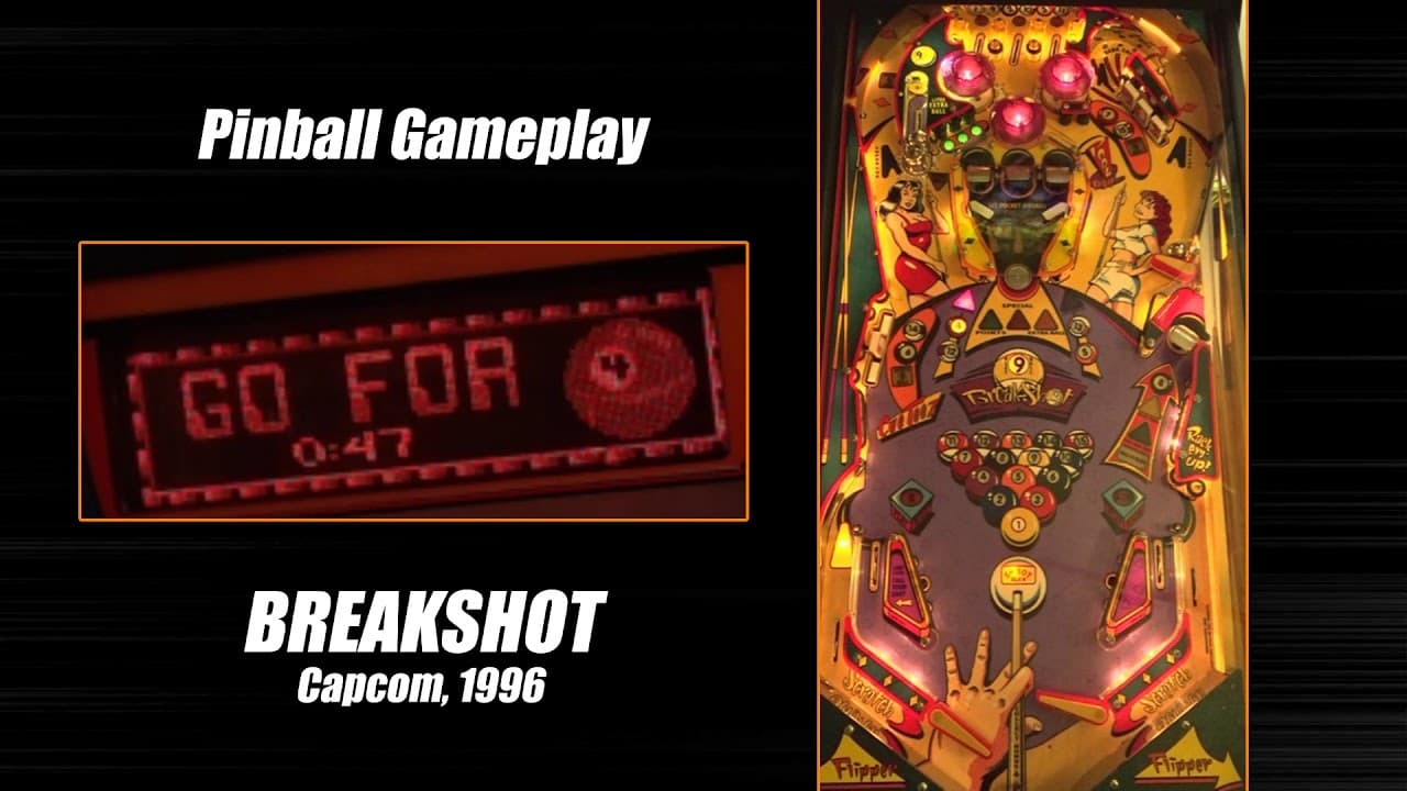 "Breakshot," produced by Capcom in May 1996, offers a modern take on classic electromechanical (EM) pinball aesthetics combined with contemporary gameplay features. Designed by Greg Kmiec, this machine features a billiards theme with a straightforward playfield layout, avoiding ramps and opting for a more traditional single-level design.