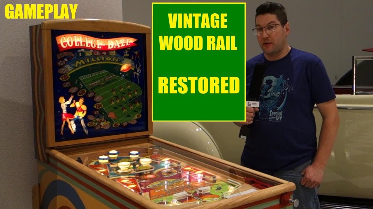 "College Daze" is a single-player electro-mechanical pinball machine released by D. Gottlieb & Co. in August 1949. Designed by Wayne Neyens with artwork by Roy Parker, the game features two flippers, two pop bumpers, three passive bumpers, and two kick-out holes.