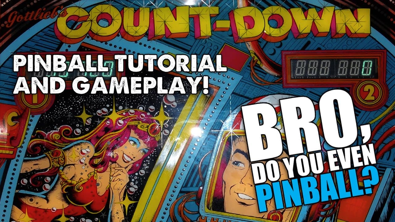 Skill Shot is the top saucer, when lit, for 5000. It toggles on 10-point switch hits, including the two slings at the top, so your plunge will likely switch it on and off a few times before going in, if it goes in at all [it can go around the saucer easily, too]. Count your bounces while plunging in addition to trying to get the speed right to score your 5000. If you like drop targets, this is your game. The scoring is all drops and bonus built up from them. Drop target value for a given color bank goes up from 500 each to 5000 each once you’ve completed the set once on a ball, so blast away! As for the bonus multiplier, this is one of the “specific order” games: finishing the green targets gives you 2X, green+yellow gives 3X, green+yellow+red gives 4X, all four colors gives 5X. But if you have yellow, red and blue without green complete, your bonus is still 1X. Your order of attack is clearly indicated here. When hitting the drops, watch out for center drain rebounds off of the green and yellow targets, especially when shot from the bottom flippers. Using the top flippers gives you more of a sideways angle on them for a usually safer rebound. Once your base bonus is up to 20K, the top saucer lights for collect bonus. As usual for these Gottlieb games, you don’t want to collect unless your bonus multiplier is high, since the bonus value resets upon collection, although the multiplier stays for the rest of that ball. If your bonus is at 4X or 5X, definitely try to collect it, then refill it; 3X is optional, don’t bother with less than that. You can only get to the top saucer using the upper mini flippers, bank shots, or nudges off of the top of the bumper; the bumper blocks shots from the lower flippers. If extra balls are enabled, completing 1 or 2 target banks [operator settable choice] will light the EB at the upper left lane. My shot for getting the extra ball is to use the lower left flipper and bank the ball off of the second blue target from the top: this often ricochets nicely into the EB lane! Center Post note: Countdowns come with a rubbered center post, but the insert for “same player shoots again” that’s just above the post is often so sunken that a ball hitting the supposed-to-rebound-into-play post won’t do so, instead hanging up on the insert’s edge, then falling back to drain. It may also bounce just enough to get stuck on the insert’s lower edge just above the post. Sadly, balls there are considered drained. Also, the post might be removed for competition. Either way, don’t rely on the post to save your ball; if it does, count yourself fortunate.