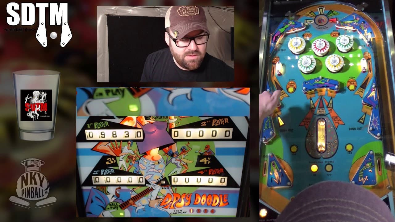 Lighting both the yellow and green bumpers lights the center bumper for 1000 and lights both side lanes to open the gate, so if you already have one color lit, getting the other color becomes your best option. First things first: keep the ball up top until you have the center post raised, via either of those side lanes. With any luck, you’ll get the ball to also go back up into the saucer to light the bumpers and or go through one of the upper side lanes to open the lower right gate. Okay, now let’s assume the ball comes back down to the flippers with the center post up. Try to get the ball to settle between the tip of either flipper and the center post. This is harder than you’re used to, since if you try the normal “hold up the flipper to cradle it” technique, the ball will roll up the flipper, over and behind the flipper pivot, and drain. Okay, assume you’ve done a drop catch, dead bounce or whatever and you have the ball in position; good. Now, look at the #1 through #4 targets to see which one is lit - - the top saucer may have advanced it beyond target #1, so you’ll need to check. You want to collect the 1-4 targets in order. Assuming you still need all four for simplicity, here’s the procedure. Microflip the ball back and forth between the flippers until you get it to roll up the right flipper far enough to shoot at the #1 target. Collect #1; if your shot grazes the rubber to the left of the target, that lowers the post and you should then go up top and try to get the post back up. Otherwise, get the ball back in that flipper-post nook, then microflip until you get a good shot at the #2 target. Repeat the process for the #3 and #4 targets; you may not need to raise the post in between these since shooting the #2 and #3 targets doesn’t lower it, but if you roll over a “down post” button along the way, try to reactive the post. Of course, you can shoot the #1-4 targets any time even if the post isn’t up and should do if you get a clean shot at the next one you need, it’s just easier and usually safer to do using the microflip technique. When shooting #4, you might graze the down post rubber to the right of it. Caution here regarding microflipping: if you flip too hard, you risk having the ball roll up the opposite flipper, over it and behind it for a drain; unlike most games, there’s no return lane rail to protect you. If you sense you flipped too hard and this might happen, flip right away with the other flipper that the ball is now rolling up to prevent a drain. One you have collected all 4 numbers shoot the center target (between #2 and #3) to start the doodler (or collect the extra ball, if on). Each time you complete the 1 through 4 targets, the doodler value rises by a factor of ten - - 10, 100, 1000 and maxing out at 10000. (On Dipsy Doodle, it’s only 10 or 100.) Starting the doodler lowers the center post immediately - - no sitting there with the ball cradled against the post forever while points score! You can’t use the open gate for free doodling, either, since when the ball trips the outlane switch before going through the gate, that stops the doodler. Now, return to your UTAD routine; the idea now that you have your doodler running is to milk the bumpers for as many points as possible while the doodler racks up more points. But the topmost slingshots [the horizontal ones] and the side “up post” lanes also immediately stop the doodler. For getting the most out of your doodler, you have to hit that center target, then go up top, avoiding the “stop doodle bug” rollovers en route, and get as much action up there as you can in the interior area between the bumpers. If you ever get the doodler value up to 1000 (or 10000; I’ve never done 10K), forget about anything other than getting the doodler running! You’ll crush anybody else with just a few seconds of doodling at that level. Control vs. Flow Alert! Letting the ball dead bounce from one flipper across to the other is NOT always safe here; it may bounce across just above the top of the other flipper and drain out behind it! You can’t cradle the ball at all; the best you can do is live catch it and let it roll down the face of the flipper. As one of the oldest EMs used, Doodle Bug may suffer more than most games from weak bumpers; while they were intended to be able to bounce the ball back into the top saucer, I’ve seen several cases where they’re now too weak to do so. Up top more often is a more viable strategy on the game when the bumpers are recently replaced, since you can then potentially advance the target sequence and light the bumpers with such shots.