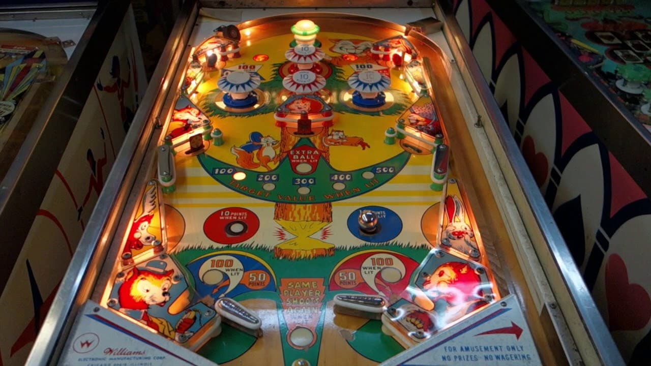 "Eager Beaver" is a two-player electro-mechanical pinball machine released by Williams Electronic Manufacturing Corporation in 1965. Designed by Norm Clark, with artwork by Art Stenholm, the game features a whimsical beaver theme, incorporating playful and colorful artwork.