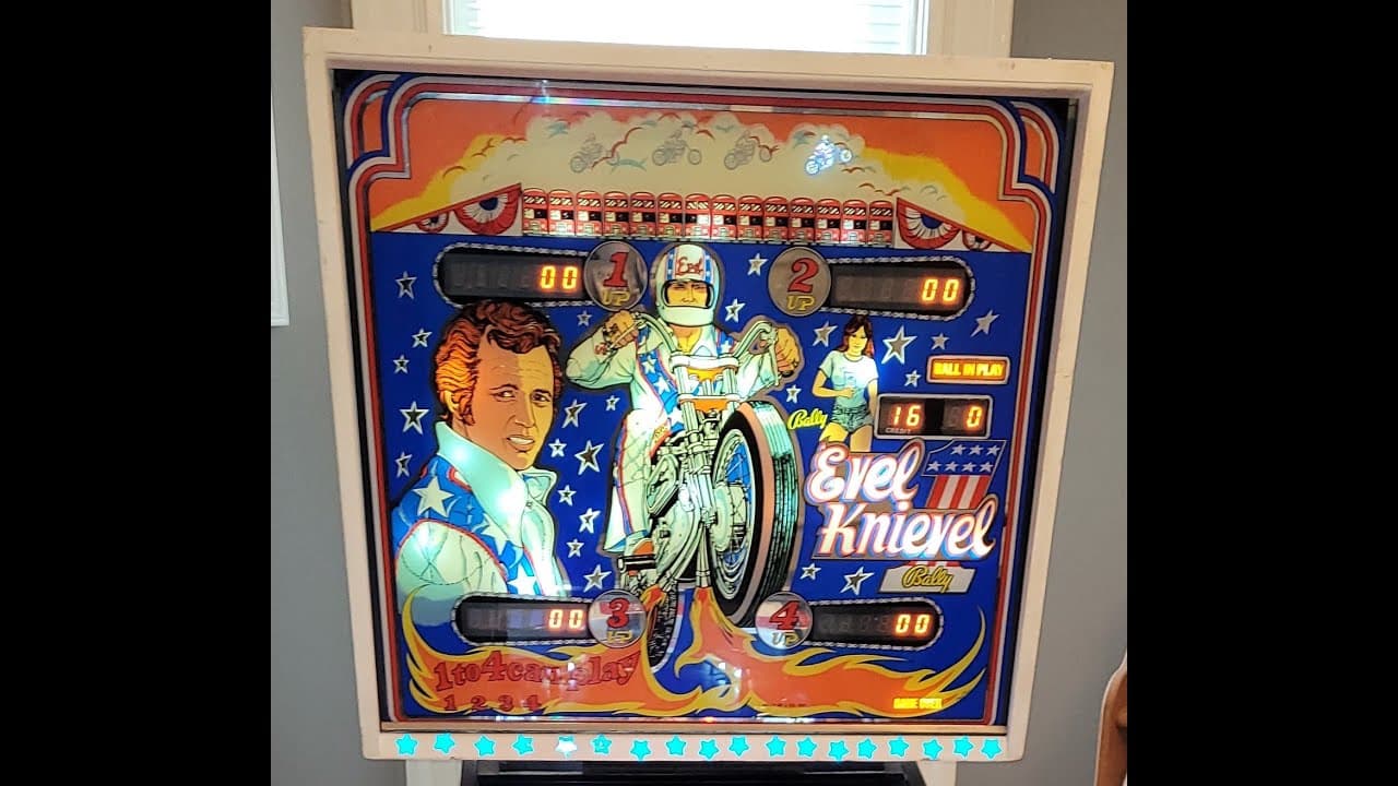 The "Evel Knievel" pinball machine, produced by Bally in 1977, is a classic solid-state machine themed around the famous stunt performer. Designed by Gary Gayton with artwork by Paul Faris, this machine is notable for being one of the first solid-state pinball machines and was produced in both solid-state and electro-mechanical versions.