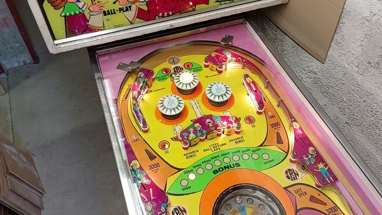 Fan-Tas-Tic is a pinball machine released by Williams Electronics in September 1972. Designed by Norm Clark with artwork by Christian Marche, this electro-mechanical game is themed around dancing, happiness, and music. The machine features two flippers, four pop bumpers, six rollover buttons, five standup targets, and three kick-out holes, but notably lacks slingshots. One of its unique elements is a captive ball spinner under the playfield and a kickback lane in the left outlane, adding complexity and strategy to the gameplay.