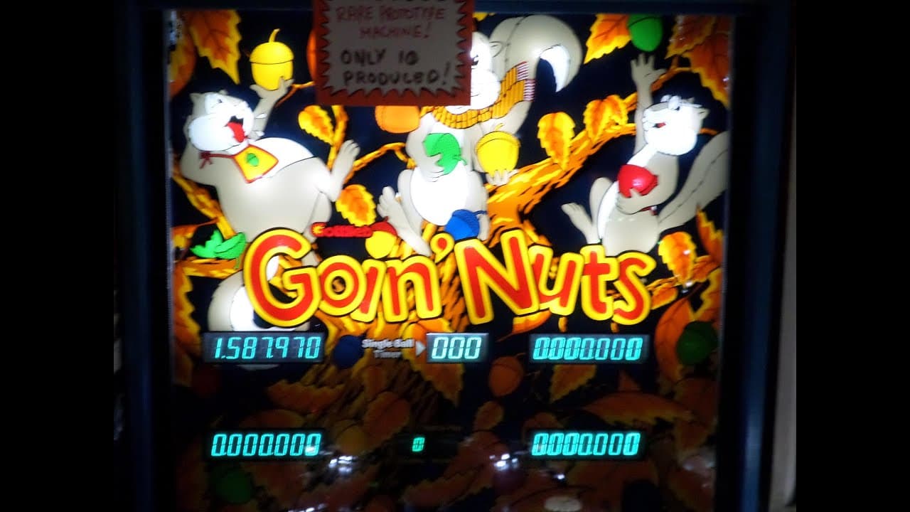 The Goin' Nuts pinball machine, produced by Gottlieb in 1983, is a rare prototype with only 10 units ever made, of which 8 are known to survive. This machine is unique for its constant multiball mode and timed gameplay, offering a distinctive experience compared to traditional pinball games. Designed by Adolf Seitz Jr. with artwork by Margaret Hudson, it features four flippers but no ramps.
