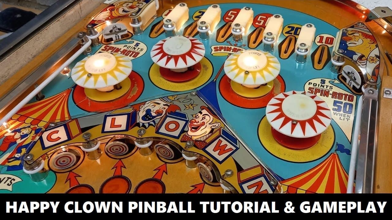 Happy Clown, released by D. Gottlieb & Co. in November 1964, is a four-player electro-mechanical pinball machine featuring a circus theme. Designed by Wayne Neyens with artwork by Roy Parker, the game is notable for its animated backglass, where a clown's head moves up and down as players score points.