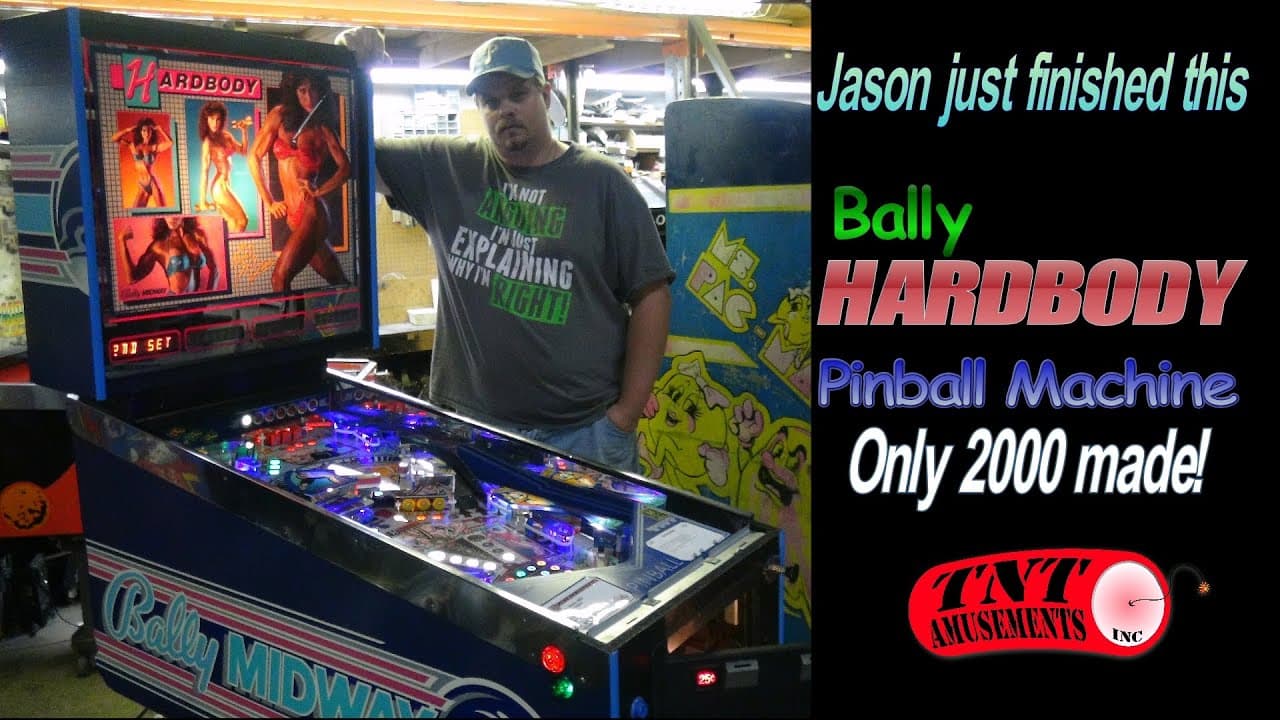 "Hardbody," a pinball machine released by Bally in 1987, features a unique fitness-themed design inspired by bodybuilding culture. It includes four flippers, two ramps, and an alphanumeric display, emphasizing precision shots and strategic gameplay. Unlike many pinball machines of its era, "Hardbody" does not have a multiball feature, making it stand out with its challenging single-ball play. The artwork and sound design, which reflect the era’s fitness craze, were crafted by Greg Freres and Bob Libbe, respectively. This machine is popular among collectors for its distinct theme and nostalgic appeal.