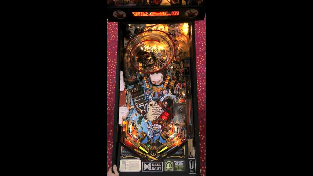 The "Hook" pinball machine, manufactured by Data East and released in January 1992, is based on the popular movie about Peter Pan and Tinkerbell. Designed by Tim Seckel with artwork by Paul Faris and music by Brian Schmidt, this game features vibrant, detailed graphics and an engaging soundtrack. It has a two-flipper layout with two ramps and a three-ball multiball mode.