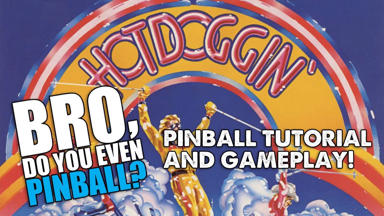The Hotdoggin' pinball machine, released by Bally in June 1980, features a unique skiing theme. Designed by Gary Gayton with artwork by Greg Freres, this widebody game includes three flippers, four pop bumpers, numerous drop targets, and a distinctive disappearing kicker in the upper right outlane.