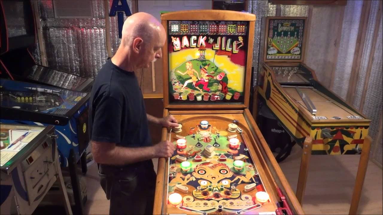 The "Jack 'N Jill" pinball machine, released by D. Gottlieb & Co. in April 1948, is a single-player, electro-mechanical game designed by Harry Mabs, featuring artwork by Roy Parker.
