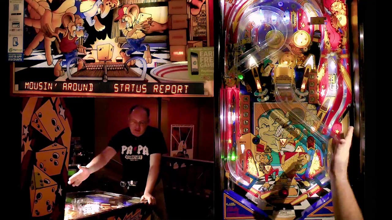 "Mousin' Around," a pinball machine released by Bally in December 1989, features a whimsical theme where players engage in a playful cat-and-mouse chase. Designed by Ward Pemberton with artwork by Pat McMahon and sound and music by Dan Forden, this game stands out for its engaging and humorous gameplay.
