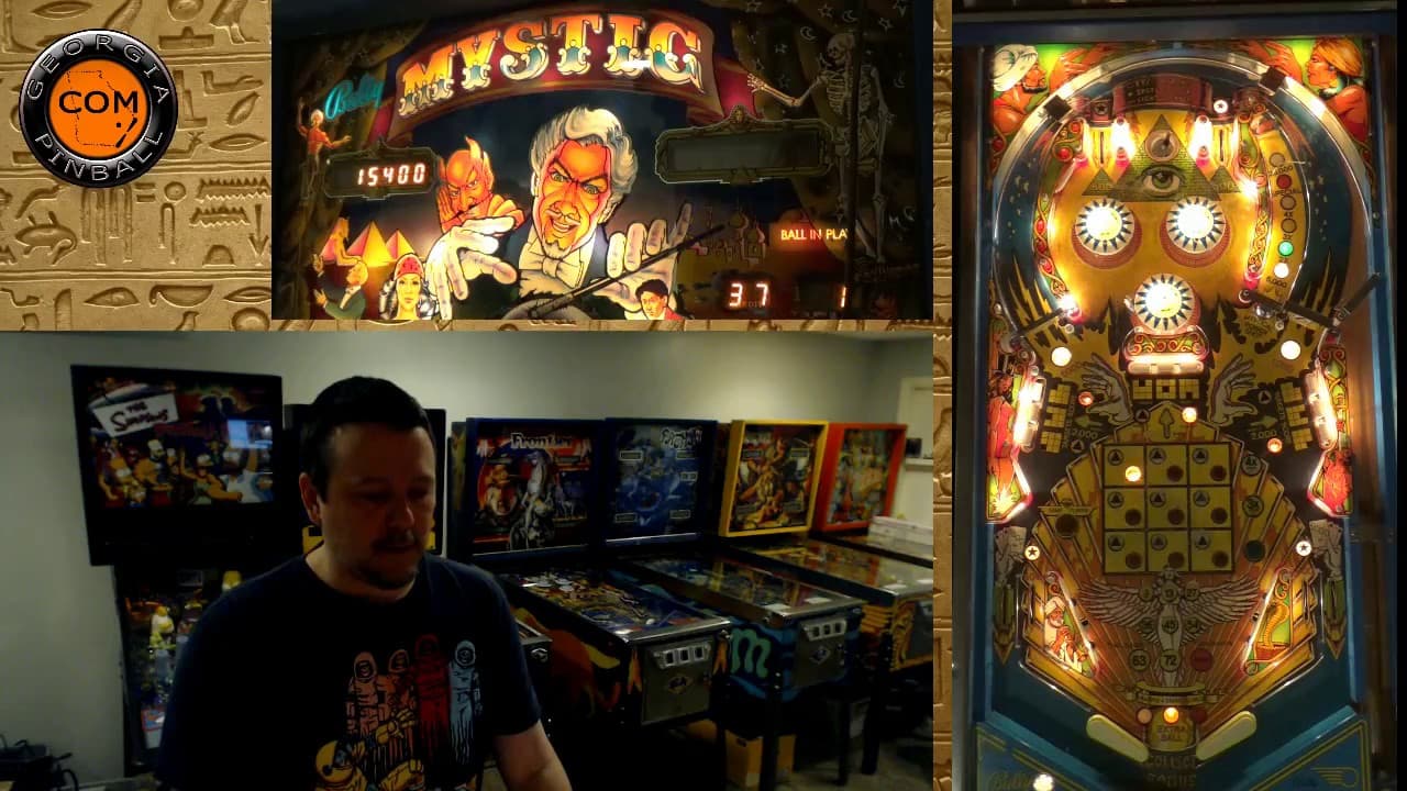 The Mystic pinball machine, produced by Bally in June 1980, is a solid-state game designed by George Christian with artwork by Kevin O'Connor. The machine features a magic theme with elements inspired by mythology and cards.