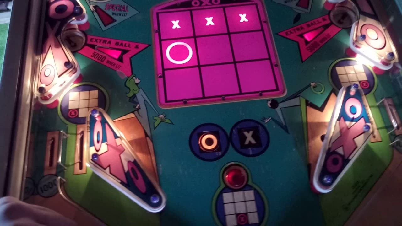 OXO is a pinball machine released by Williams Electronics in August 1973, designed by Norm Clark with artwork by Christian Marche. This electro-mechanical game is themed around the classic game of tic-tac-toe, with players aiming to light up X's and O's on the playfield to achieve three in a row.