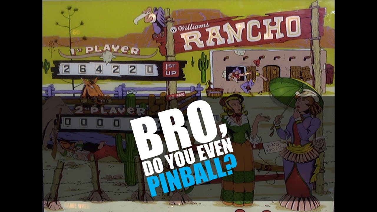 Rancho, released by Williams in 1977, is an electro-mechanical pinball machine with a Western theme. Designed by Harry Williams and Chris Otis, it includes two flippers, two pop bumpers, three drop targets, two kick-out holes, and a spinning target.