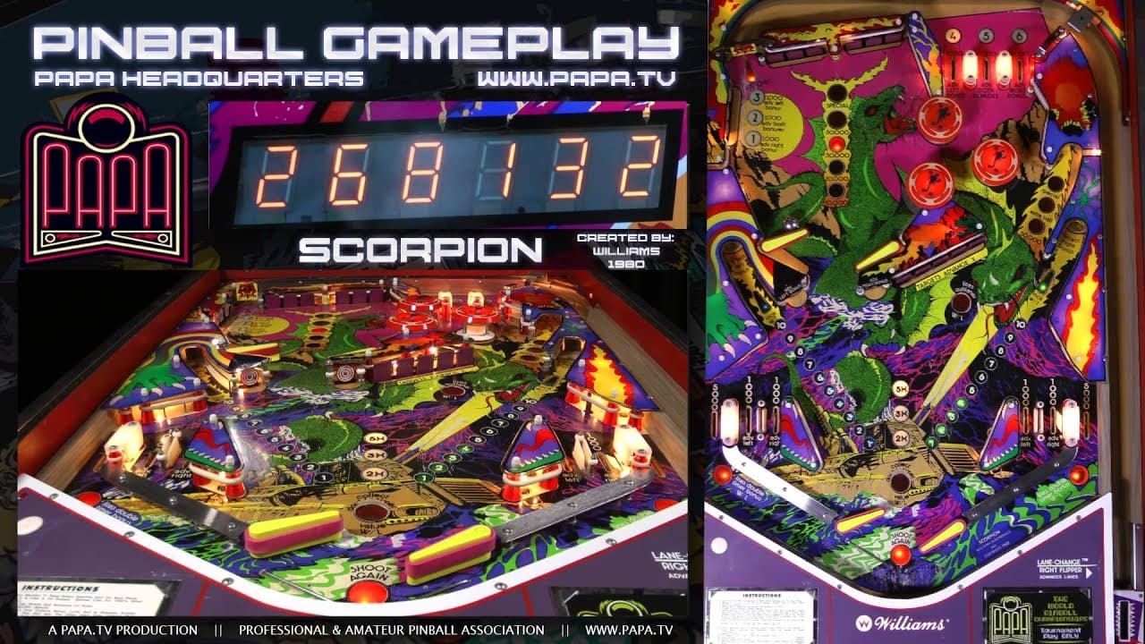Released in July 1980 by Williams, Scorpion is a solid-state pinball machine designed by Barry Oursler. Known for its wide-body design, it features four flippers and the innovative “multi-ball timer,” a first in pinball history. The game incorporates a nautical adventure theme with striking artwork by Constantino Mitchell and Tony Ramunni.