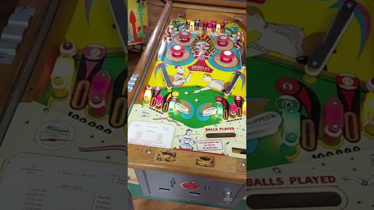 "Spot-Pool" is a billiards-themed electro-mechanical pinball machine released by Williams Electronic Manufacturing Corporation on February 10, 1959. Designed by Harry Williams, the game features two flippers, four pop bumpers, two slingshots, and five standup targets.