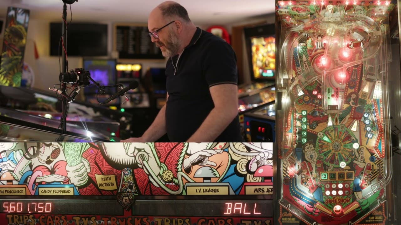 The "Game Show" pinball machine, released by Bally in April 1990, was designed by Dan Langlois and Peter Perry with art by Tim Elliot. It features two flippers, three pop bumpers, and two ramps, with a quirky game show theme that includes a bell ringing mechanism.