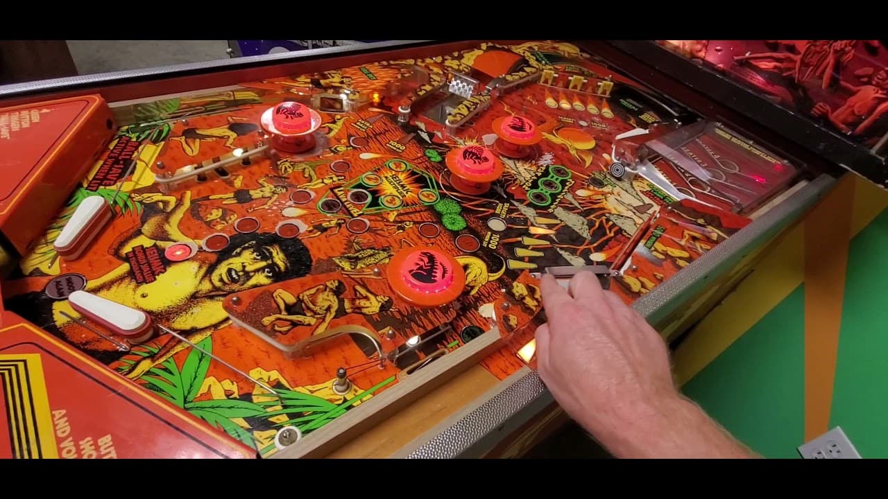 The "Volcano" pinball machine, released in September 1981 by D. Gottlieb & Co., features a wide-body design and is part of the Gottlieb System 80 series. It includes three flippers, one ramp, and a three-ball multiball feature. The game is themed around volcanic eruptions and disaster scenarios, with artwork by David Moore and design by John Osborne and Tom Szafransky.