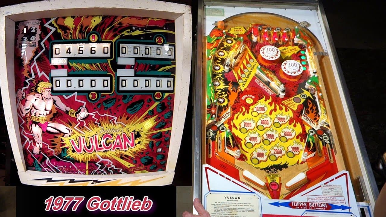 The "Vulcan" pinball machine, manufactured by D. Gottlieb & Co. in October 1977, is a classic electro-mechanical game designed by Ed Krynski with artwork by Gordon Morison. This four-player machine features a mythological theme centered around the Roman god Vulcan, known for his association with fire and metalworking.