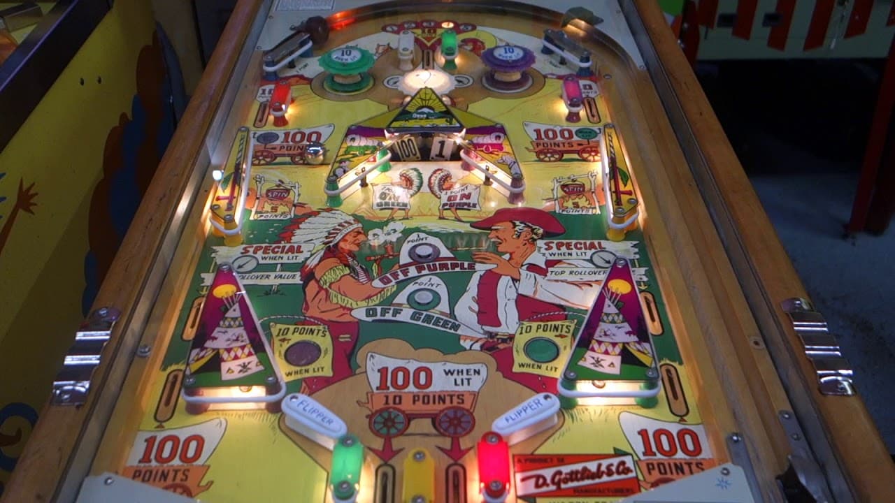 The Wagon Train pinball machine, released by D. Gottlieb & Co. in April 1960, is an electro-mechanical, single-player game designed by Wayne Neyens with artwork by Roy Parker. It features a Western theme inspired by the popular TV show Wagon Train, and its backglass artwork depicts actor Ward Bond, who starred in the series.
