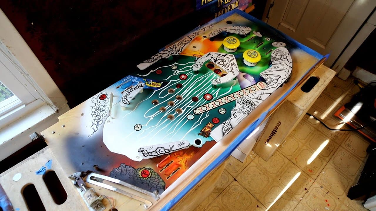 To date I am near complete with the playfield! Quite a task on its own when painting it by hand, after countless hours prepping the machine to even be ready for the wild replacement art.